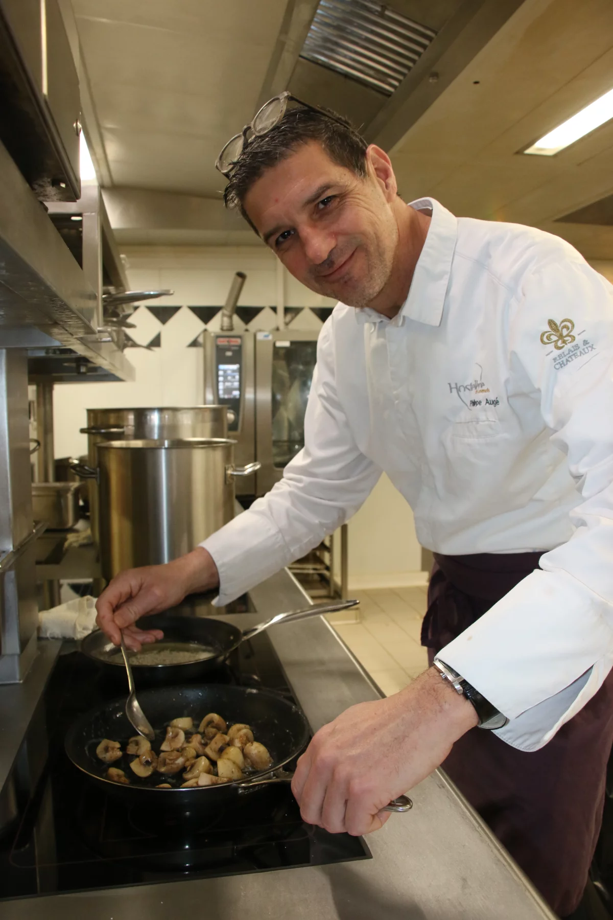 Mais ce n’est pas la seule caractéristique de sa cuisine qui fait la part belle aux produits. « Je suis très exigeant sur la qualité de nos approvisionnements. Une partie de nos légumes vient d’ailleurs de notre jardin et à chaque fois que cela est possible, nous travaillons en direct avec des producteurs », explique Philippe Augé qui se définit également comme un grand saucier.
