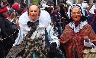 Des années-lumière séparent le carnaval rhénan et la « Fastnacht » (le carnaval alémanique) dans la région du Bade-Wurtemberg, même s’ils ont la même origine : les « jours fous » qui précédaient jadis la période de carême débutant, dans la tradition chrétienne, le mercredi des Cendres pour une durée de 40 jours. 40 jours sans avoir le droit de consommer de la viande, des œufs ou du beurre… et sans faire l’amour ! Pour « survivre » à ces restrictions, il fallait bien organiser des fêtes débridées, faire bombance, finir les provisions et, surtout, s’amuser. Au point que, souvent, ces fêtes dégénéraient, étaient alors interdites par les autorités, avant d’être autorisées à nouveau sous la pression du peuple.