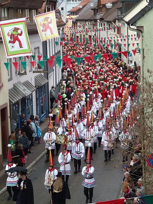 Au Pays du Bade-Wurtemberg, et plus particulièrement en Forêt-Noire, les carnavaliers défilent à pied. Et pas n’importe quels carnavaliers : des sorcières, des fous, des hommes sauvages, des gnomes de la forêt, des diables, des animaux féroces, des pleureurs, des balayeurs de l'hiver, etc. Du « Hansel » au « Brüele » en passant par les « Da-Bach-na-Fahrer », les noms sont un peu difficiles à prononcer!