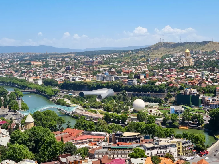 On s’attend à une architecture soviétique ou prime l’utilitaire sur l’esthétisme. On découvre au contraire une ville agréable entre tradition et modernité, arborée, vivante, à l’histoire multiculturelle. La vieille ville magnifiquement restaurée se décline en places ombragées, en ruelles étroites et tortueuses qui abritent des échoppes de toute sortes et de veilles églises en pierre, d’influence persanes, ottomanes et russes. Il faut rallier la forteresse de Narikala en téléphérique (départ depuis le parc Rike) et prendre de la hauteur pour prendre toute la mesure de la capitale géorgienne. A voir également la cathédrale Sioni, érigée au VIème siècle qui abrite la croix de sainte Nino ou encore la tour de l’horloge bâtie par le maitre marionnettiste Gabriadze, contestataire subtil de l’occupation russe.
