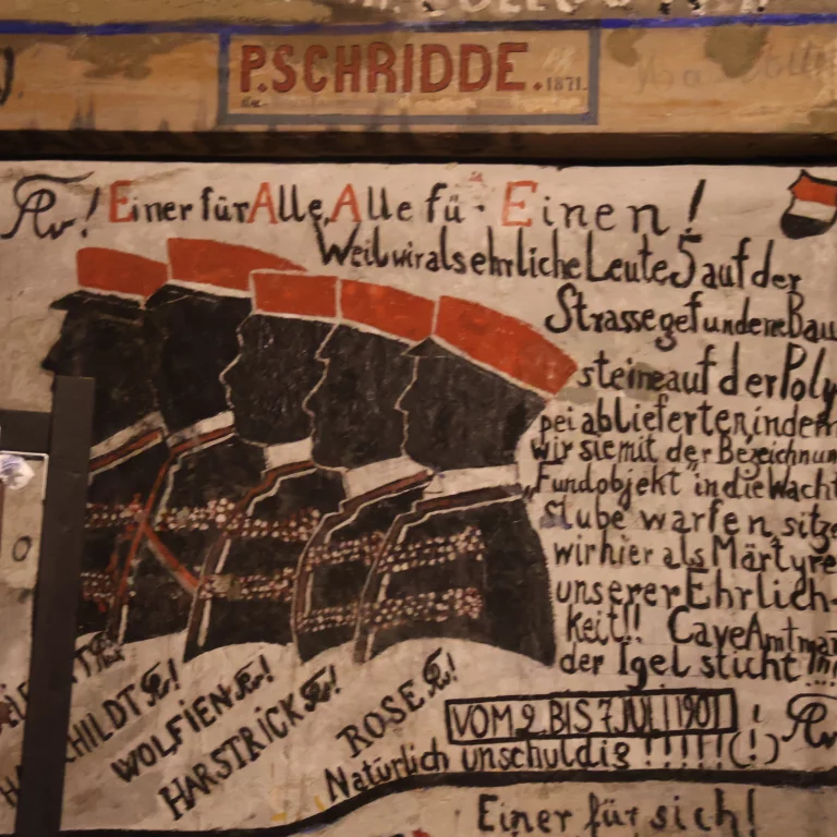 Une punition ? Pas vraiment, car ces jeunes messieurs ont mis un point d'honneur à y passer quelques jours. Ils se faisaient d’ailleurs livrer leurs repas, pouvaient sortir assister aux cours avant d’y retourner et d’immortaliser leurs délits triviaux sur les murs : comme faire sortir le cochon de la cour d’un voisin, se battre en duel, faire du tapage nocturne ou encore se baigner nus dans la fontaine du marché. Les murs du cachot se lisent comme un livre d’images!