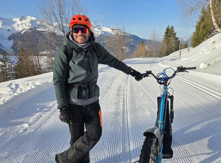 Avec sa belle gueule d’acteur de cinéma, Arnaud Fournier-Lambert est d’abord un amoureux de son territoire, heureux de vivre dans le sillage de ses aïeux. Il a grandi à l’ombre du massif de la Lauzière, dans une famille d’agriculteurs. Et très vite, le ski a été son autre école de vie. Au tableau noir, le gamin était aussi brillant que pour effacer les piquets des pentes enneigés. Devenu ingénieur, spécialiste des sols, il y a consacré trois petites années, avant de ressentir cet irrésistible appel des montagnes. « L’annonce de l’arrivée du Club Med à Valmorel a été déterminante dans mon choix d’un retour au pays. Je me suis dit que ça allait transformer la station et attirer d’autres investisseurs » explique-t-il. En 2010, il saute le pas, renonce à un salaire confortable et fait le choix de la liberté. Sur un terrain familial, avec le soutien d’un copain menuisier il construit sa maison en bois, un peu à l’écart de la station. Dans le prolongement, il ouvre une petite ferme pédagogique avec moutons, chèvres, poules et lapins, puis crée Valmo’bourricot qui propose aux beaux jours des balades en autonomie d’une heure ou de plusieurs jours, accompagnées par des ânes. L’installation d’une yourte où il organise des soirées fondues toute l’année fait le trait d’union entre ses activités de l’hiver et celles de l’été. La même année, il construit une cabane dans les arbres pour proposer un hébergement insolite aux touristes. « Il n’est pas beau mon bureau » questionne -t-il dans un large sourire, en pointant du doigt le massif du Cheval Noir qui domine la station. Pour ne plus quitter son village, Arnaud Fournier-Lambert est devenu un homme quatre saisons qui n’a cessé d’ajouter des cordes à son arc : moniteur et directeur de l’école de ski de Valmorel de décembre à avril, il est aussi à ses heures restaurateur, paysan, loueur d’hébergement, accompagnateur de moyenne montagne… Depuis peu, il commercialise et escorte des balades en trottinette électrique, été comme hiver (lire info pratique). A Valmorel, on craint autant qu’on apprécie son franc parler. L’homme n’a pas la langue de bois, et il n’a pas l’habitude de parler pour ne rien dire. C’est un bosseur qui a la tête bien faite. Il connaît les familles d’ici, les codes de la montagne et à l’avantage d’avoir une vision éclairée et lucide sur l’avenir de son territoire qu’il veut préserver ouvert et vivant.