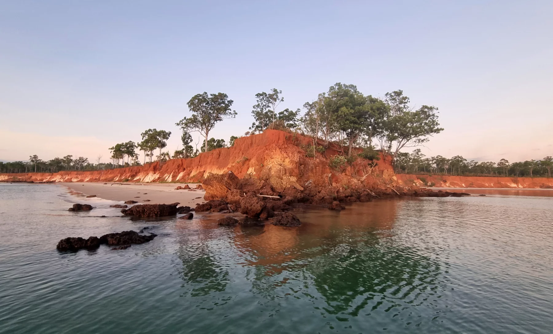 La péninsule de Cobourg, située en territoire aborigène est une frange côtière qui arbore de larges étendues de mangroves. On peut y observer des dauphins, des tortues, mais ne comptez pas vous y baigner. Les eaux turquoises du littoral sont infestés de requins et de crocodiles marins. Sur cette terre du bout du monde, à moins de 400 km du Timor, Venture North a installé un camp perdu au bord de l’eau, dans une épaisse forêt tropicale. Le premier village est à 80 km et il n’y a évidemment pas de réseau, ce qui permet de se reconnecter pleinement à la nature. Ce camp qui peut accueillir au maximum 16 personnes n’a ni eau courante, ni électricité, mais le confort est bien là. L’éclairage est assuré par des panneaux solaires et l’eau de la douche est collectée en forêt. Les tentes sont montées sur pilotis et comprenne toutes des lits en dur et des toilettes sèches séparées. La cuisine est assurée matin, midi et soir par un chef installé sur place.