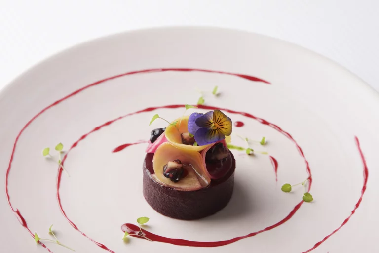 Sa cuisine est une explosion d’audaces, à l’image de ce céleri rave fumé travaillé avec un bouillon de pastis alsacien ou encore ce bar cuit au chalumeau sur la peau, servi avec des ceps snackés, en purée, rehaussé au gel de bergamote. Éric Girardin joue sur les couleurs, les textures, les saveurs et n’hésite pas à bousculer les standards de la cuisine alsacienne. Témoin cette tarte à l’oignon revisitée ou encore ce munster transformé en mousse, agrémenté de fleurs citronnées et de marc de gewurtz. Pour se concentrer sur son métier, le chef a fait le choix d’un menu unique en sept étapes. « Tous les quinze jours, il y a au moins un plat qui change », reconnaît un serveur. Histoire de travailler chaque produit au meilleur de sa saison.