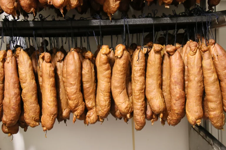 « On met à dégorger les chaudins 24 heures. La viande est hachée au couteau. On y ajoute de l’ail, des échalotes, du poivre, de la muscade et du vin blanc. Une fois en boyau, elle est fumée au bois de hêtre durant quatre à six heures. ». L’andouille se conserve ensuite trois semaines au réfrigérateur. Il est de tradition de la cuire 40 minutes avant de la déguster avec une salade de pommes de terre tièdes, arrosée « d’une chaude meurotte » – comprenez, une vinaigrette avec de la crème et des échalotes. Mais l’andouille ajolaise se déguste aussi avec une potée ou une choucroute.