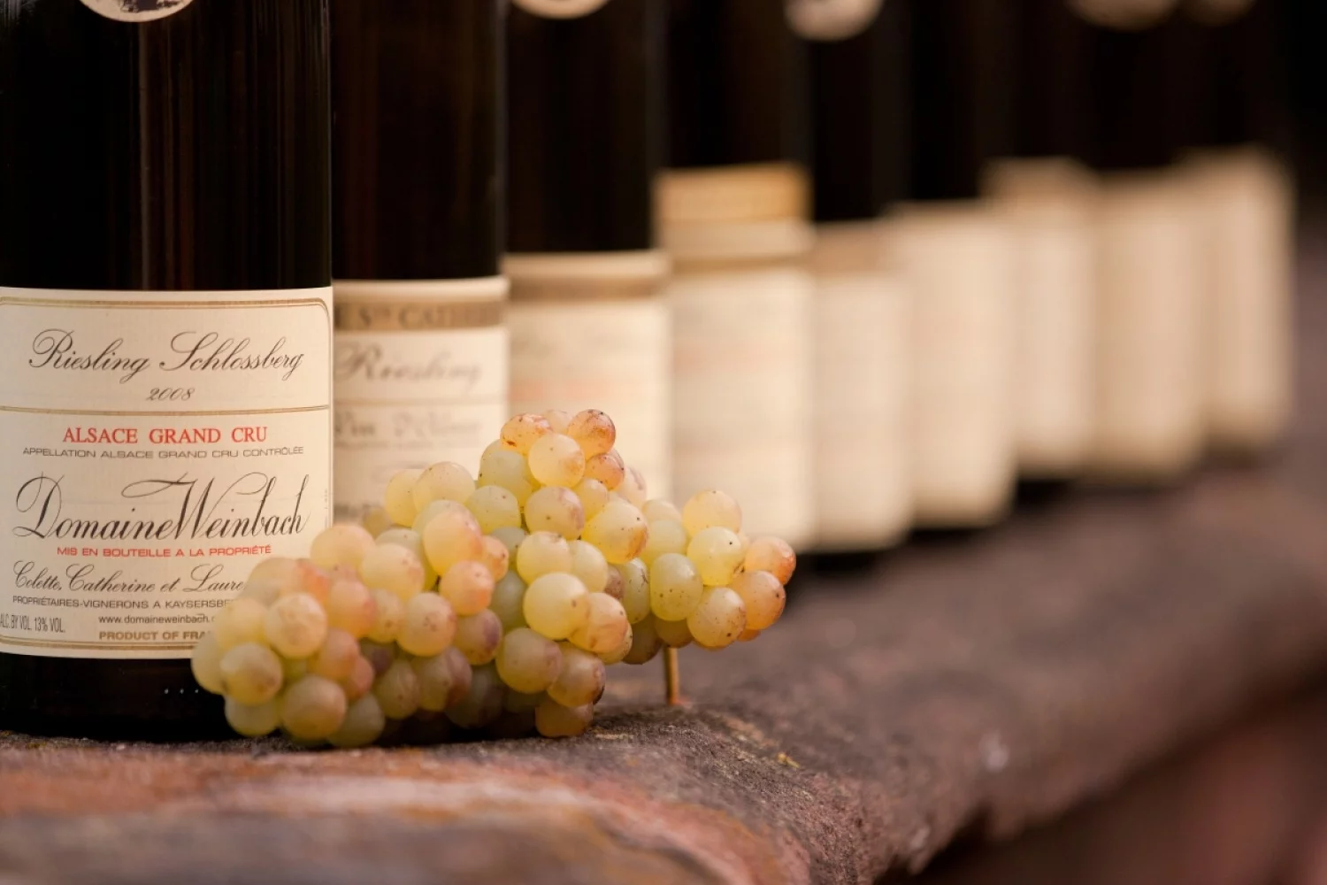 La pente est forte, l’orientation plein sud assure un ensoleillement optimal. Le sol granitique peu profond génère mille souffrances pour la vigne qui produit ici un riesling exceptionnel. Nous sommes sur le prestigieux coteau du Schlossberg, sur les hauteurs de Kaysersberg. Cette terre d’élection du domaine Weinbach a été le premier grand cru alsacien, classé en 1975. Il côtoie l’Altenbourg, le Mambourg, le Marckrain et surtout le Furstentum, réputé pour ses gewurztraminers opulents, considérés parmi les tous meilleurs liquoreux au monde.