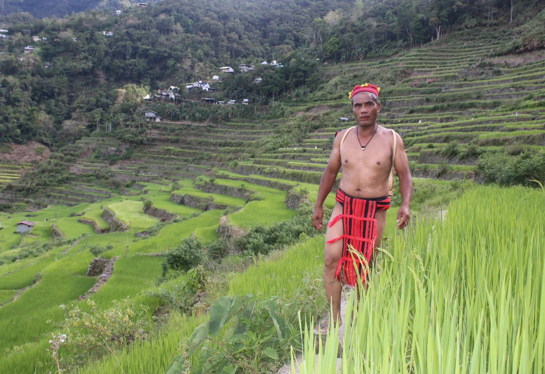 Depuis 2000 ans, les Ifugaos sont les maîtres d’œuvre de cette fabuleuse architecture en amphithéâtre qui aimante le regard. Ces cultures sont soutenues par d’innombrables murs de pierre organisés selon un découpage et des agencements qui ne doivent rien au hasard. Ils permettent une irrigation équilibrée des terrasses avec cette eau précieuse collectée dans les forêts. Comme jadis, la culture se conjugue avec la nature au plus près. On ne récolte qu’une fois l’an, sans recours à des engrais ou des variétés de riz à pousse rapide.