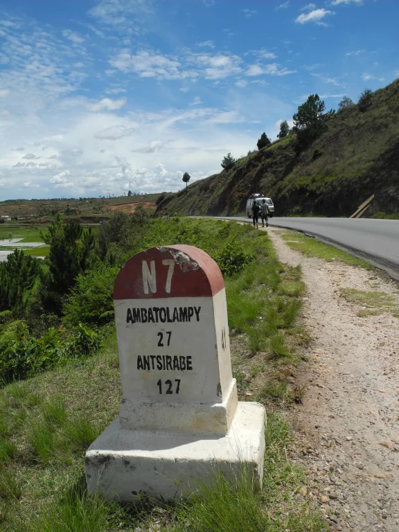 L’enfance, c’est sûr, et les souvenirs des premières vacances familiales à la mer dans une Dauphine surchargée : les désirs de voyage prennent parfois vie dans un sigle, un chiffre, la chanson d’un fou chantant venus de loin. Pas loin d’égaler la longueur des « mille bornes » françaises, cette RN7-là s’étire sur 926 kms entre Antananarivo, la capitale de Madagascar, et Tuléar (Toliara), le port du sud bordant le canal du Mozambique. Autant dire que les paysages ouvrent d’autres horizons que la mythique « route bleue » française. Les couleurs - des champs, des rizières, des pistes latéritiques filant vers des reliefs polis par le temps - n’en sont pas moins vives, éclatantes même, comme vibrent les cœurs vivants des villages et des villes traversés aux noms insolites et sans fin : Andoharanofotsy, Ambatobevohoka , Ambohikambana, Fianarantsoa… La halte l’est tout autant, quand surgit l’obstacle tout aussi inédit : le chantier de réfection d’une chaussée qui certes le mérite, mais dont les cantonniers fabriquent sur place le goudron salvateur, ou un bus d’un autre âge bloquant l’artère vitale pour s’être engagé dans une manœuvre audacieuse de changement de direction et embourbé dans un fossé, voire un troupeau de zébus rejoignant un abattoir lointain, sous la garde enjouée d’un groupe d’enfants. Après tout, le voyage ne vaut que par les surprises, les émotions qu’il engendre. En cela Madagascar ne démérite pas. Personne ne s’en plaindra.