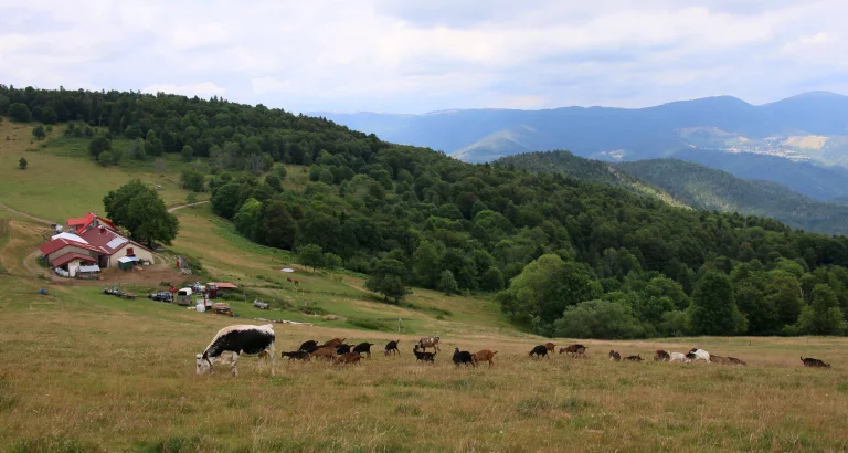 En cette saison, le travail ne manque pas. La ferme qui abrite une centaine de vaches et de chèvres produit sa propre viande, mais aussi ses fromages. La tarte aux myrtilles me fait des clins d’œil et c’est à regret que je quitte les lieux. La chaume, inondée de soleil résonne du son des clarines. Je poursuis en direction de Fennmatt. L’herbe est haute et généreuse. Serpolets, arnicas et millepertuis tendent leurs fleurs au bord du chemin. Sur ces prairies d’altitude, les scientifiques ont dénombré plus de 200 graminées différentes. C’est cette diversité qui fait la qualité du lait d’été et par conséquence celle du fromage. Je bifurque à gauche en direction du col du Lochberg, puis encore à gauche vers Wissgrutt.