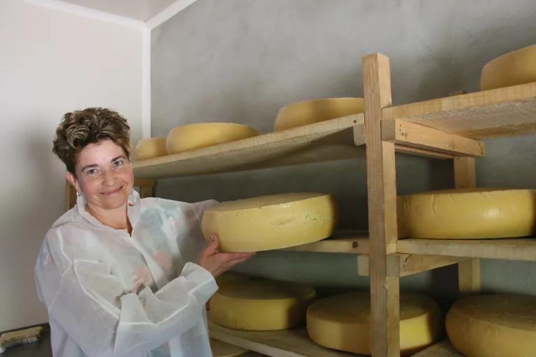 En une vingtaine de minutes, j’atteins la ferme auberge du Lochberg que la famille Kippelen a racheté en 1988. J’en profite pour remplir ma gourde d’eau. Sophie m’accueille dans un large sourire. Elle, sa sœur et ses deux frères ont repris la ferme auberge à la suite de leurs parents. Sophie s’apprête justement à laver à l’eau salée ses tommes de bargkass (NDLR : un fromage à pâte pressée non cuite typique de la montagne vosgienne).